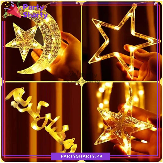 Ramadan Kareem Crescent Moon With Stars LED Curtain Fairy Lights For Decoration