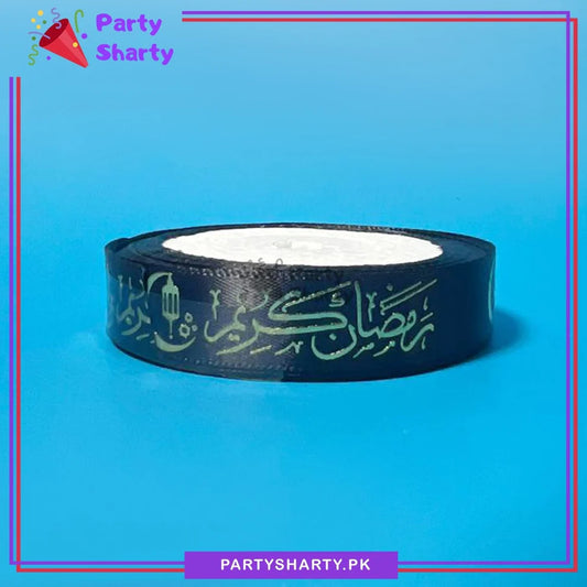 Imported 1.5CM Black Ramadan Kareem With Moon & Lantern Golden Foil Printed Ribbon Roll For Ramadan Gift Decoration
